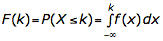 Die Verteilungsfunktion ist die Summe (Integral) der Einzelwahrscheinlichkeiten bis k: