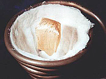 Hier wird ein Aluminiumklötzchen durch hochfrequente Induktionsströme gleichzeitig am Schweben gehalten und geschmolzen.