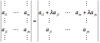 - Der Wert einer Determinante ändert sich nicht, wenn man zu einer Zeile (Spalte) ein beliebiges Vielfaches einer anderen Zeile (Spalte) addiert.
