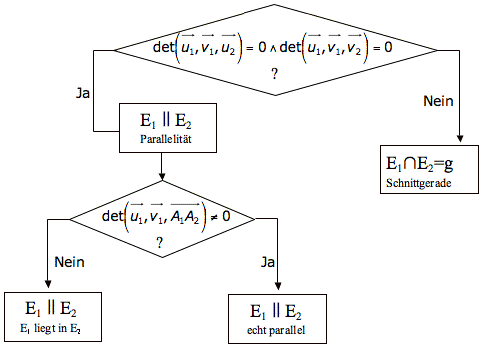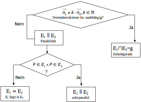 Berechne die Lage der Ebene E1 zur Ebene E2